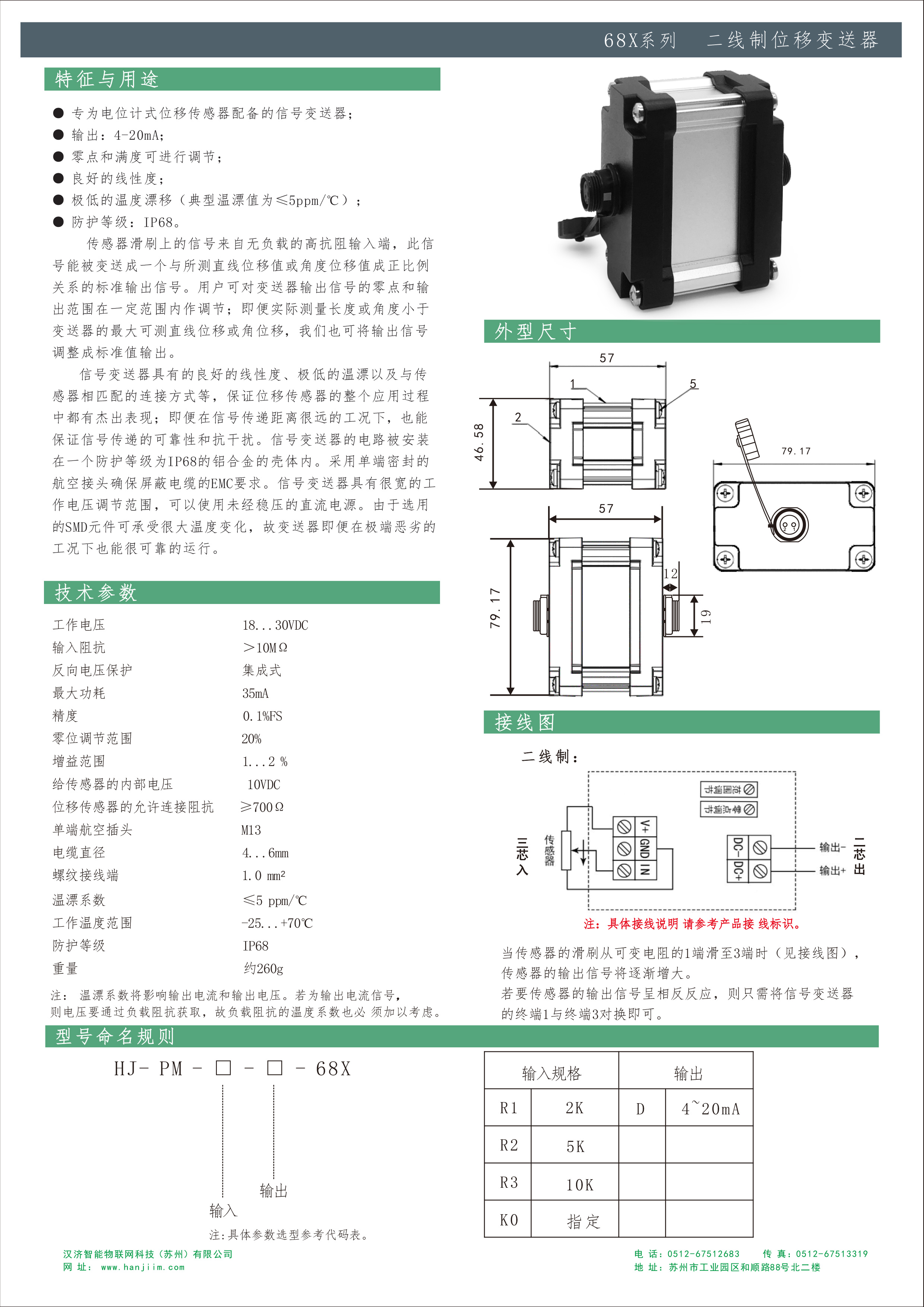 專為電位計(jì)式位移傳感器配備的信號變送器; 輸出:4-20mA; 零點(diǎn)和滿度可進(jìn)行調(diào)節(jié); 良好的線性度; 極低的溫度漂移(典型溫漂值為≤5ppm/℃); 防護(hù)等級:IP68。