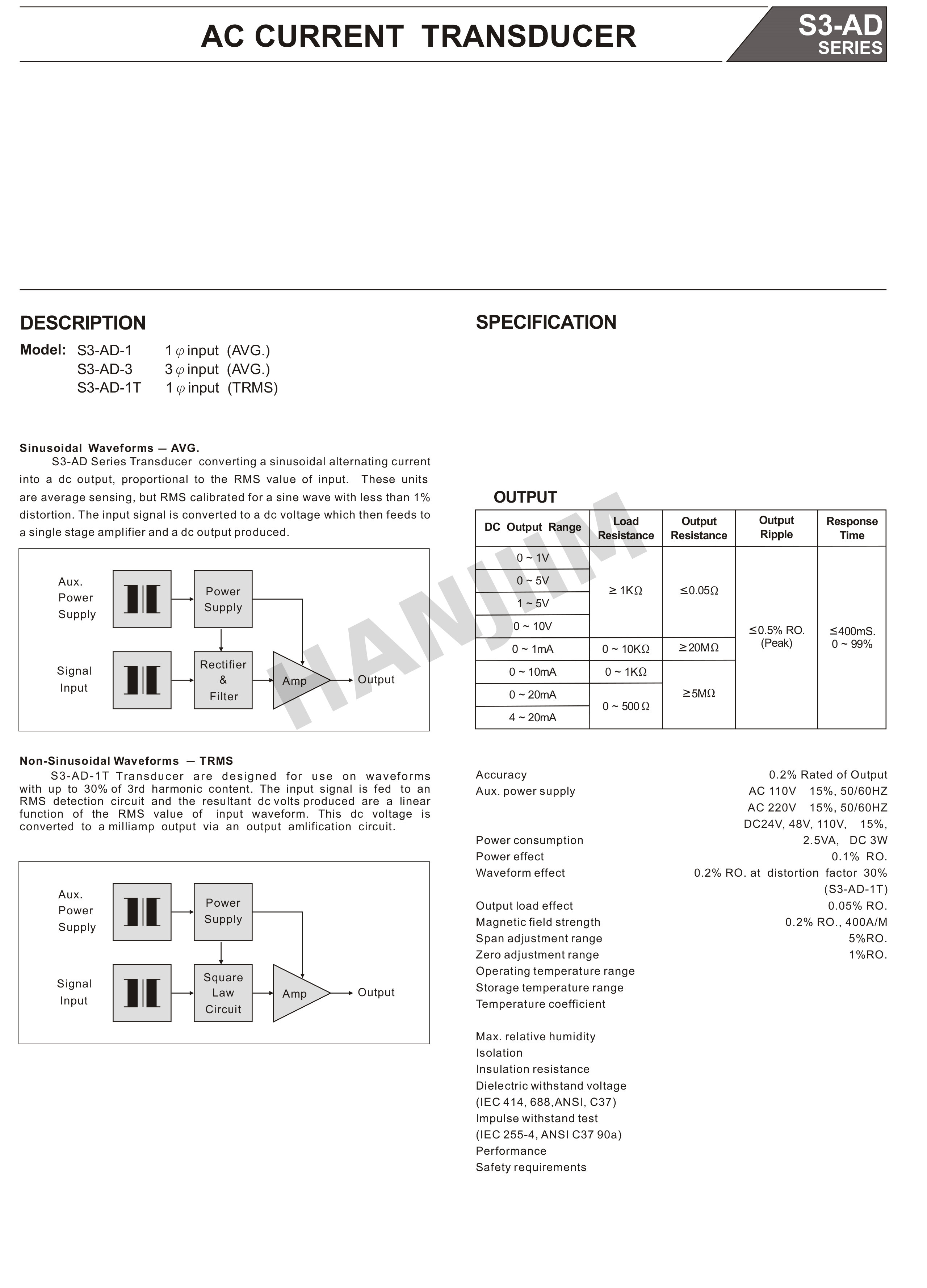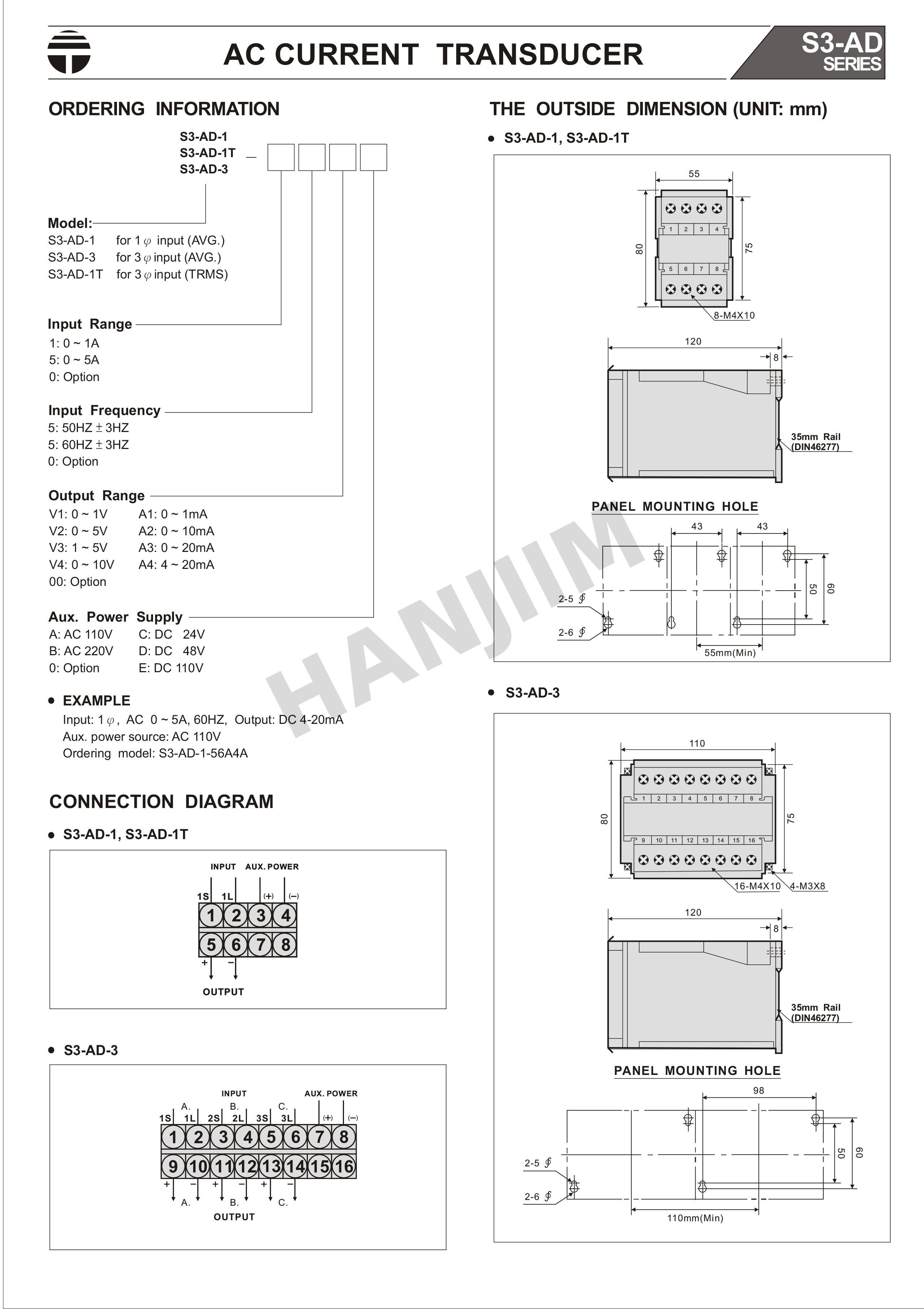 臺灣TAIK臺技 S3-AD單相電流變送器 轉(zhuǎn)換器
